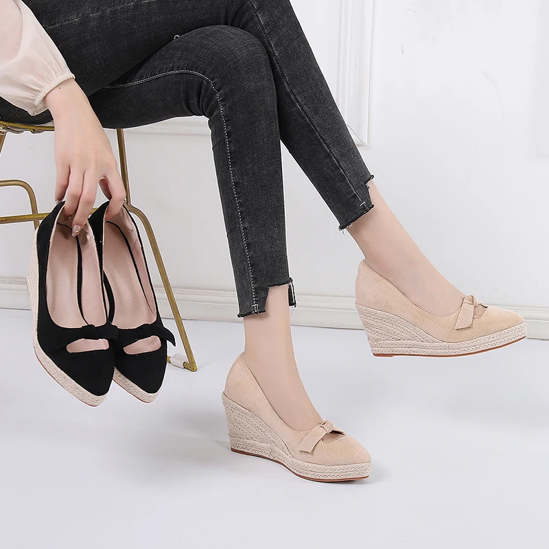 Verhogen Hoogte Boog-Knoop Damesschoenen Platform Puntschoen Damesschoenen Vlinder Klompen Nieuwe Zomerjurk Lente Pompen Verhogen