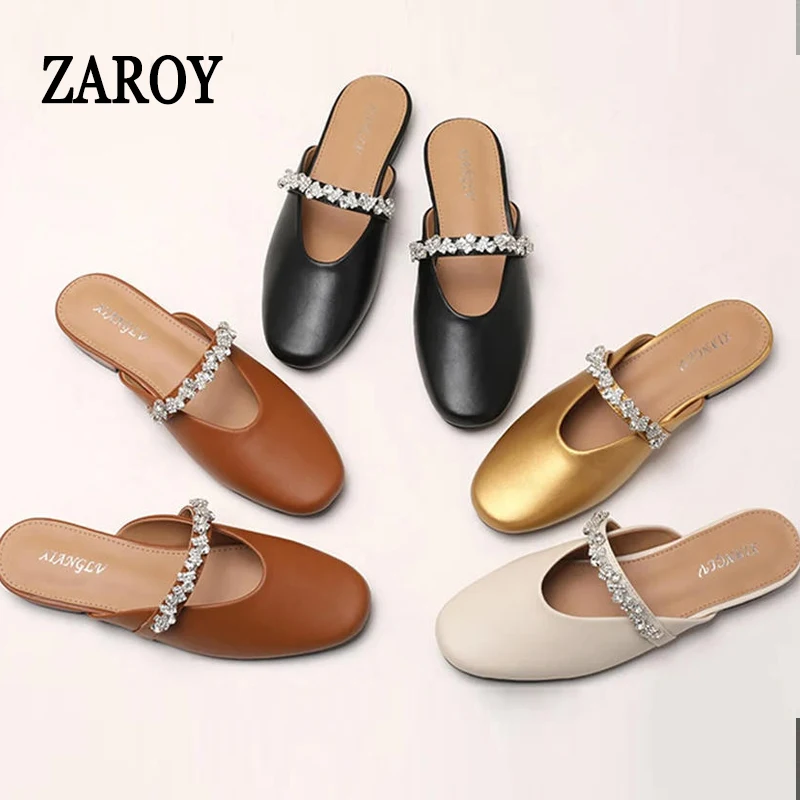 ZAROY Strass Lederen Muilezels Vrouwen Sandalen Plus Size Gesloten Teen Slip Op Slides Casual Outdoor Slippers Jurk Sandalias MS9727