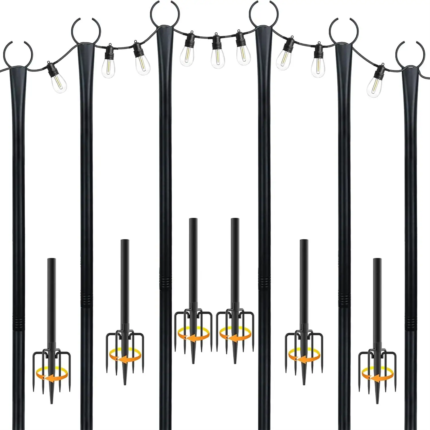 2/4/6 Pack lichtslingerpalen, 10 Ft lichtpalen voor buitenlichtslingers, buitenverlichtingspaal met vork, metalen palen
