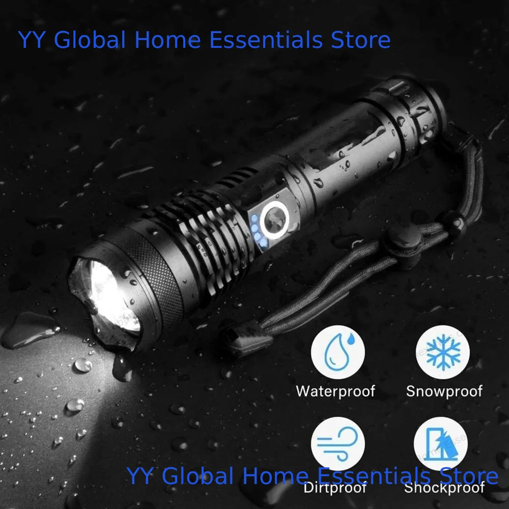 Krachtige XHP50 LED-zaklamp: 4-core zoomzaklamp met Type-C opladen, 18650 camping buiten noodhandlantaarn