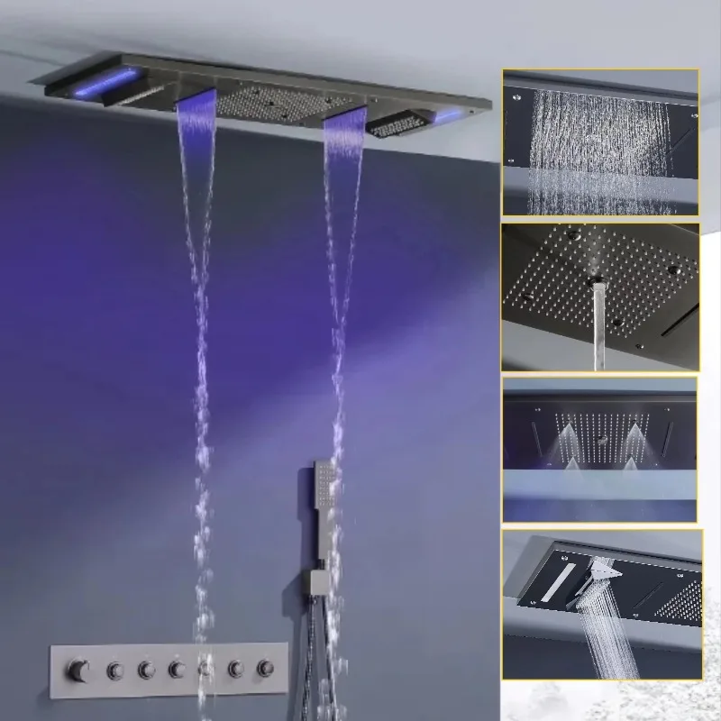Nieuwe mode 900 * 300 mm plafond 6-functie LED thermostatische doucheset regenval badkamer slim systeem