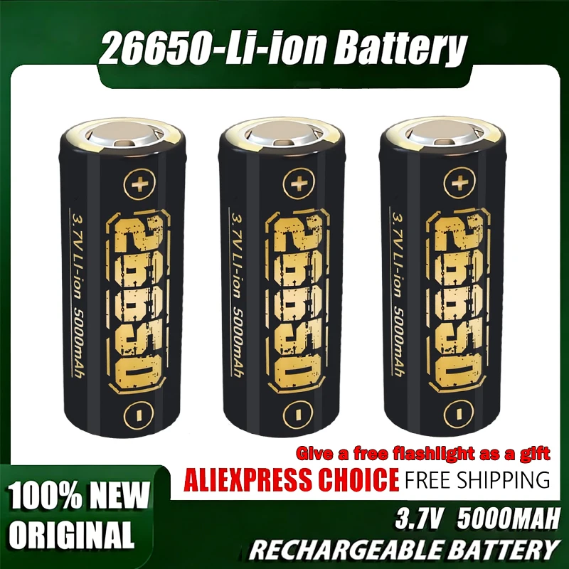 26650 Li-ion batterij 3,7 V 5000 mAh oplaadbare batterij Cyclus 1000 keer voor LED-zaklamp Power Bank met gratis geschenkzaklamp