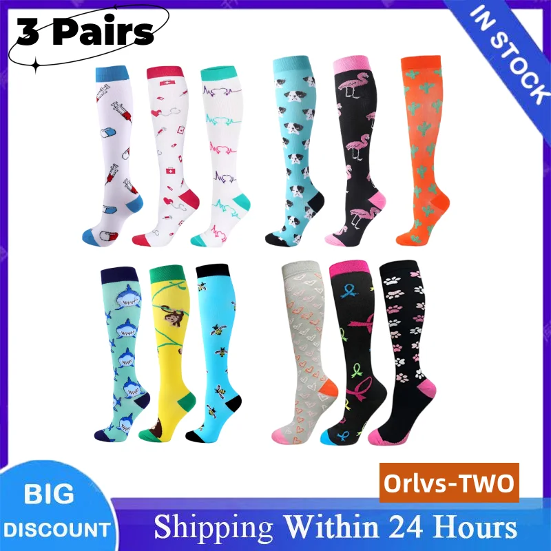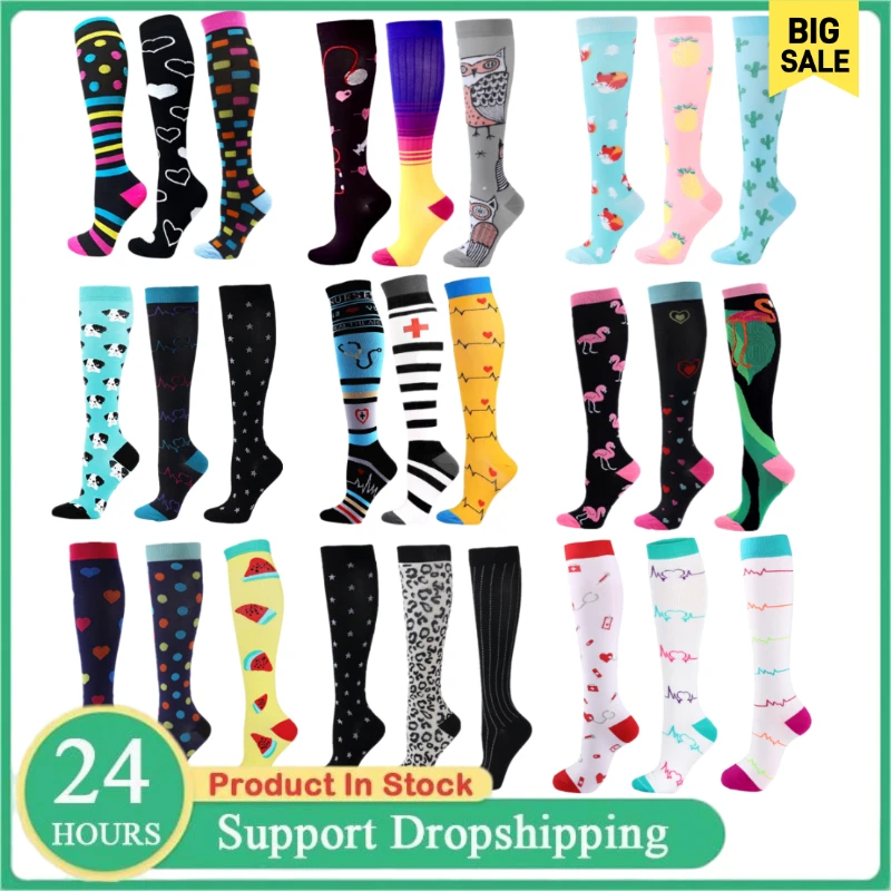 3-pairs heren dames mode compressiesokken voorkomen diabetes spataderen sportsokken voor hardlopen fietsen reizen vlucht yoga