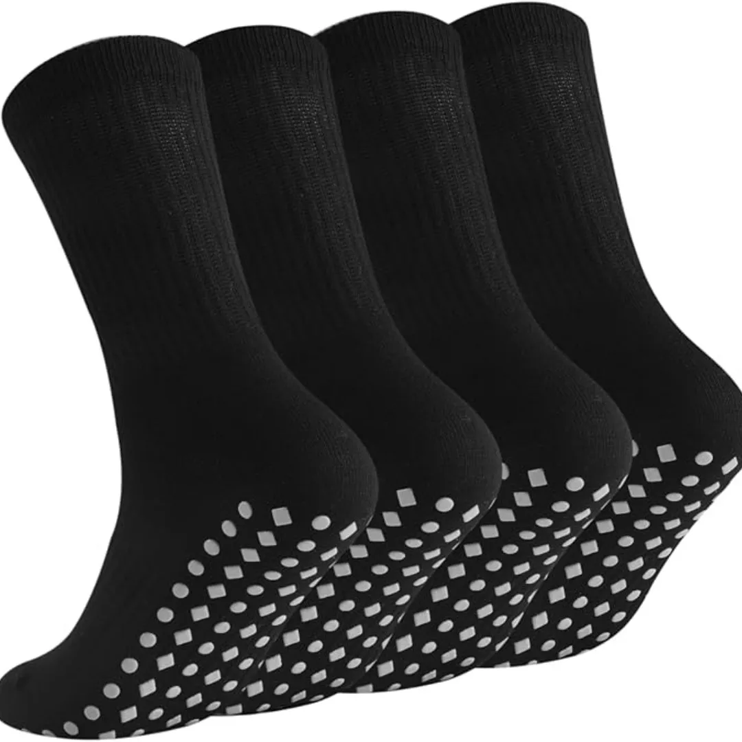 Antislip grip sokken voor heren dames, crew sokken met grip voor ziekenhuis, pilates, yoga, cadeau voor senioren, 4 paar