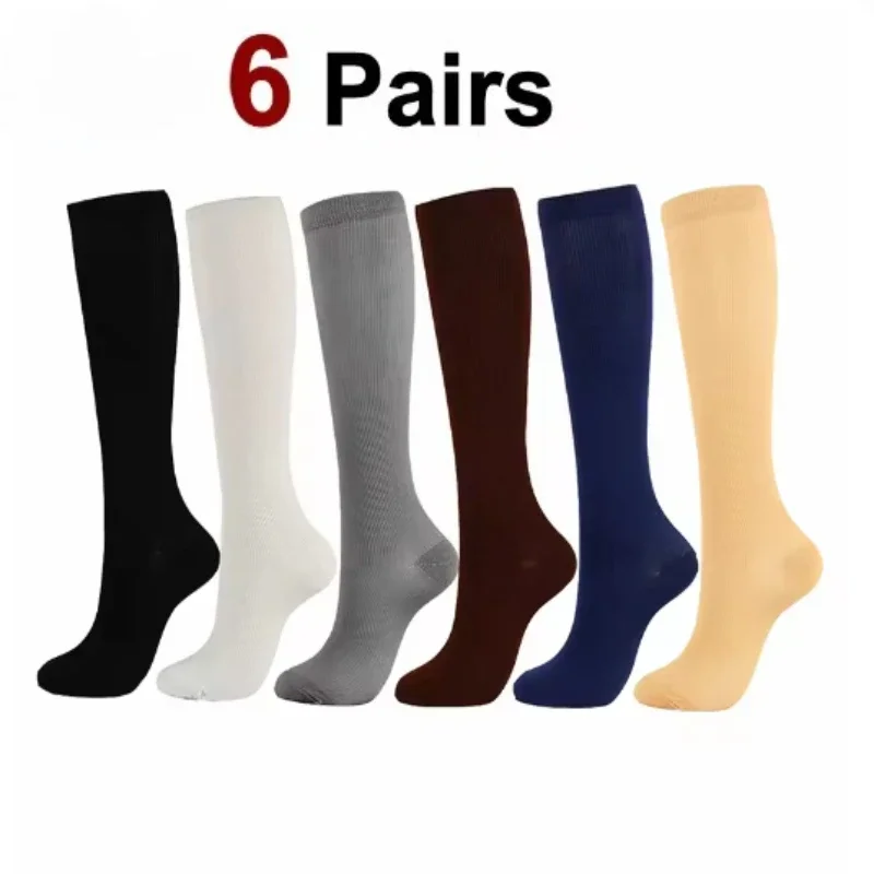 6 Pairs Compressie Sokken Vrouwen Mannen Anti Vermoeidheid Pijnbestrijding Afgestudeerd Unisex Compressie Kousen Knie Hoge 20-30 MmHg
