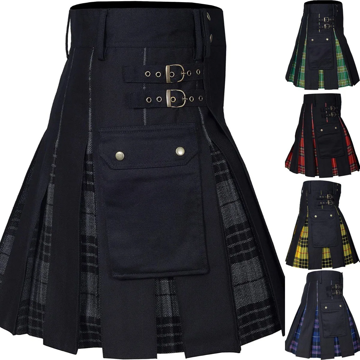 Zomer heren kleding geruite kleurblok camouflage geplooide rok voor mannen linnen wijde zoom traditionele Schotse kilt stijl casual kleding