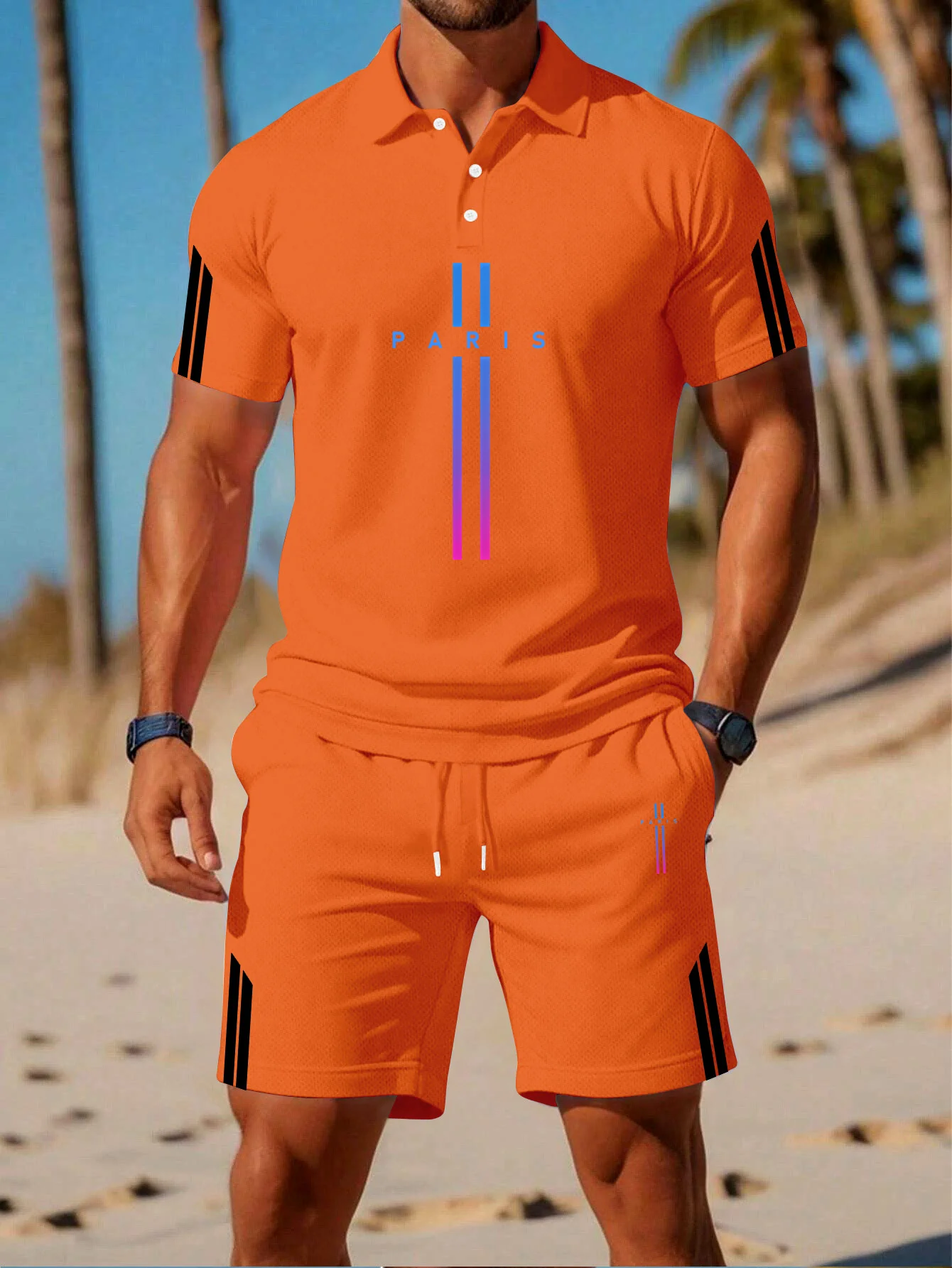 Sportieve snel drogende poloshirt en korte broek set, dagelijks buiten- en strandkleding, tweedelig set