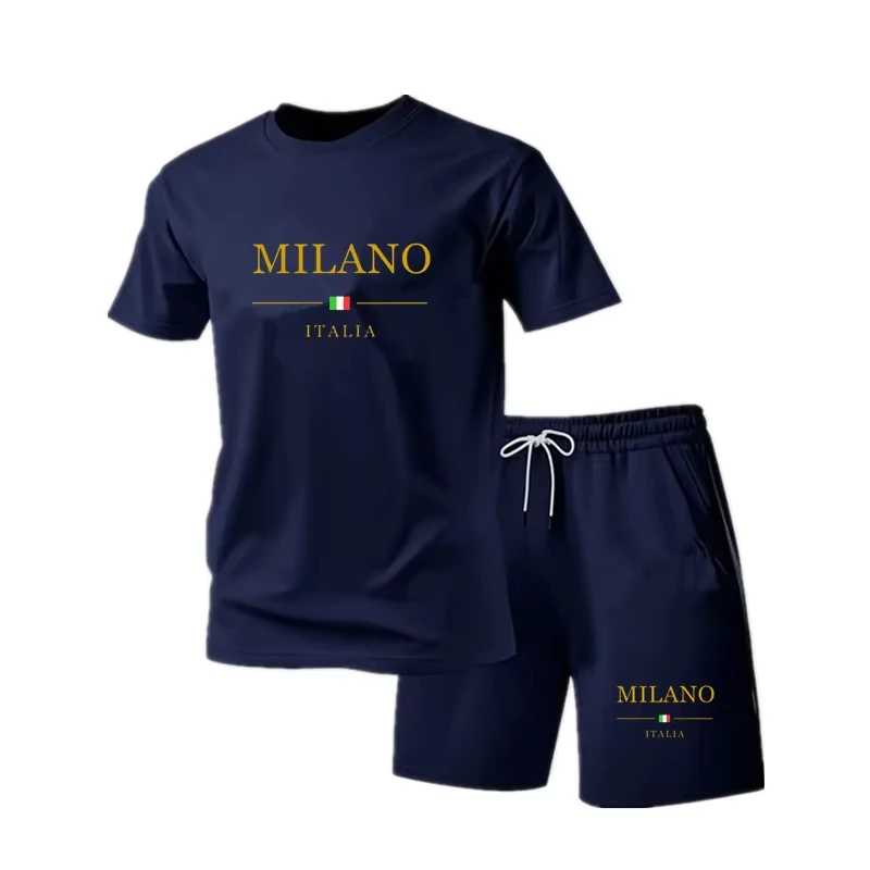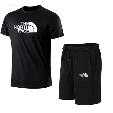 Nieuwe zomer fitness sportkleding voor heren, t-shirt met korte mouwen en shorts, tweedelige set, ademend en sneldrogend casual wear.