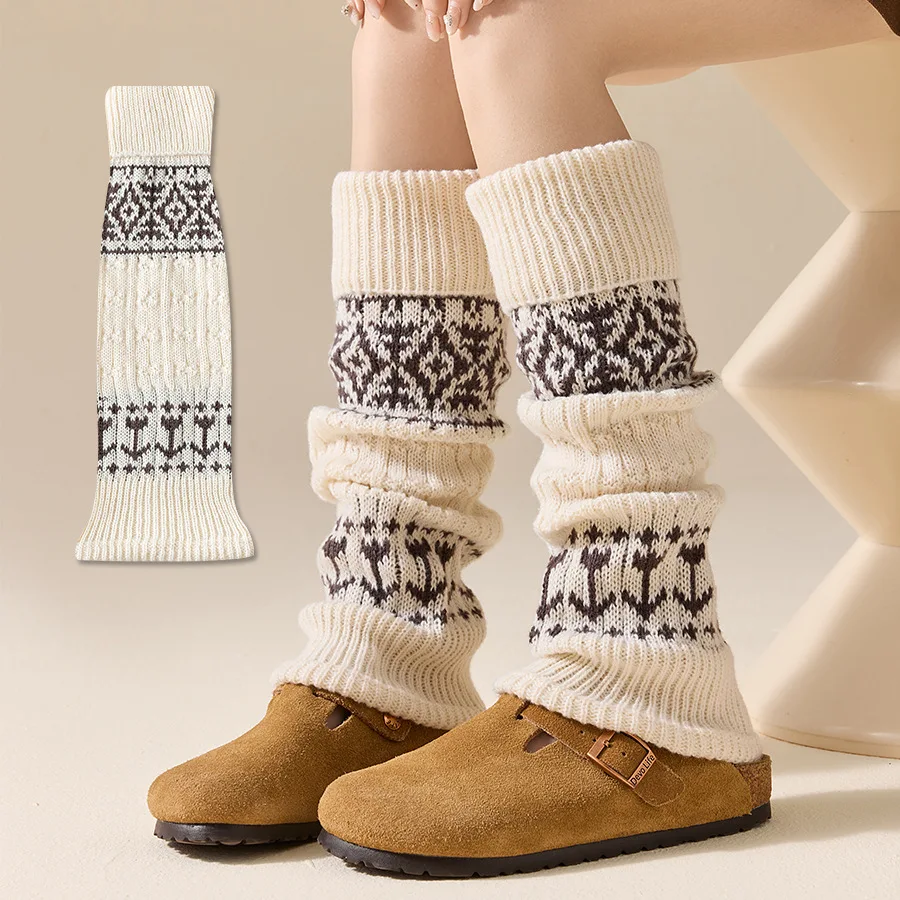 Dames Fair Isle Style Scrunch Slouch Sok Beenwarmers Schotse Jacquard Vintage Sokken Wintermode Warme Losse Sok Retro