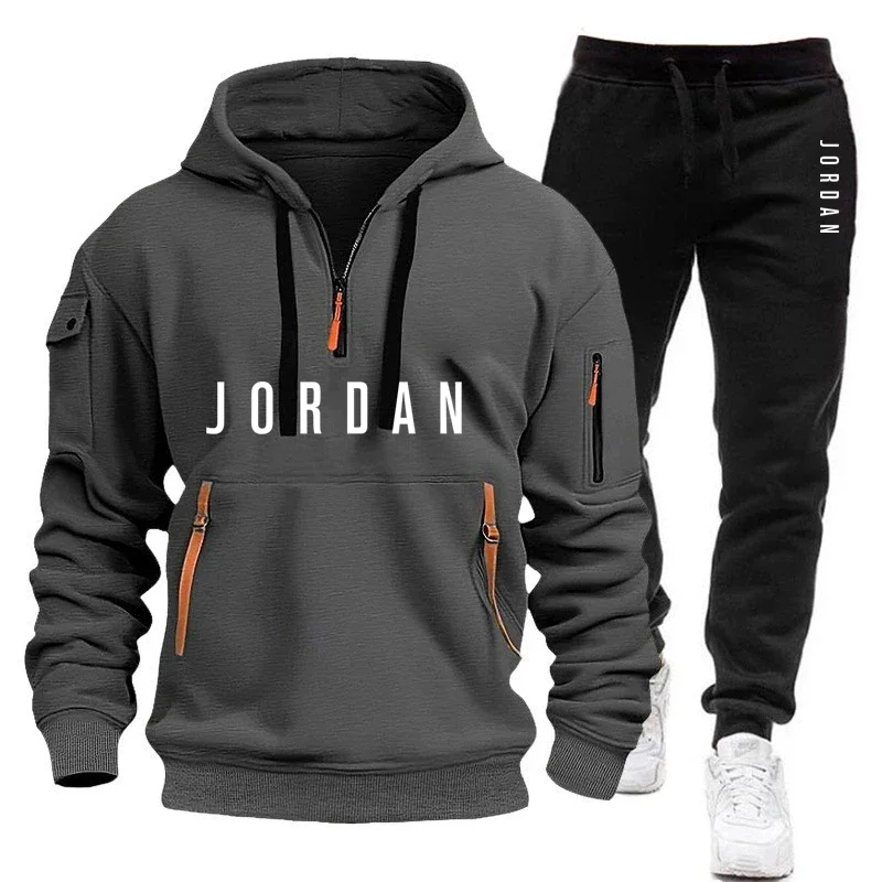 Tweedelige heren casual hoodie met trekkoord, sportkleding voor herfst/winter, nieuwe stijl, losse top met sportieve casual pullover