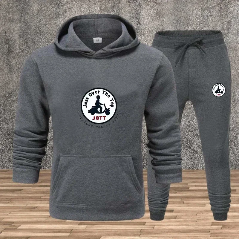 Heren herfst en winter nieuwe effen kleur hoodie+broek tweedelige set modieuze casual sportset maat S-3XL