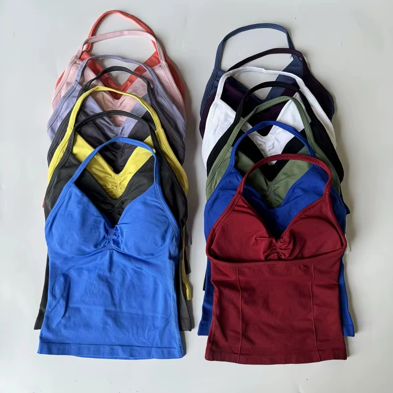 Populaire naadloze yogakleding voor dames met kleurcontrast, rugloze, strakke, klassieke set, sport- en fitnessmodekleding, comfortabel