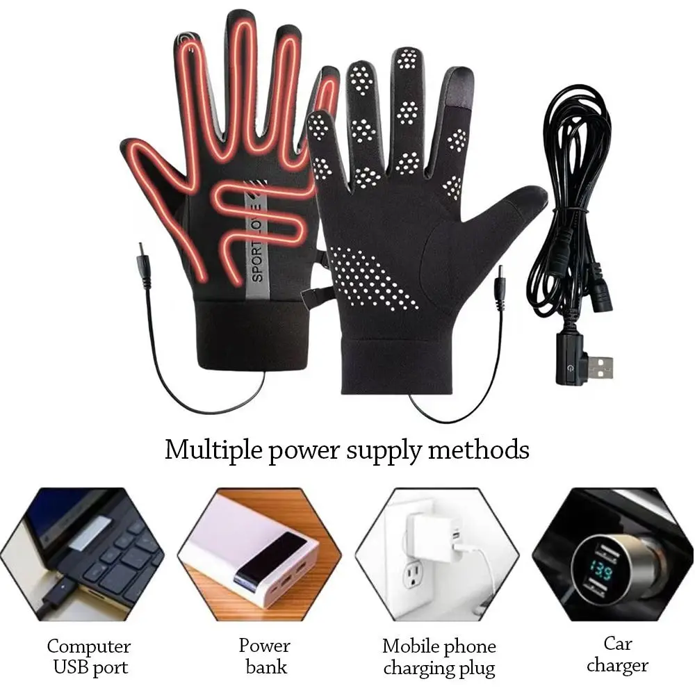 Creatieve winter USB-verwarmde handschoenen Verstelbare antislip touchscreen-handschoenen Waterdichte warme oplaadbare handschoenen