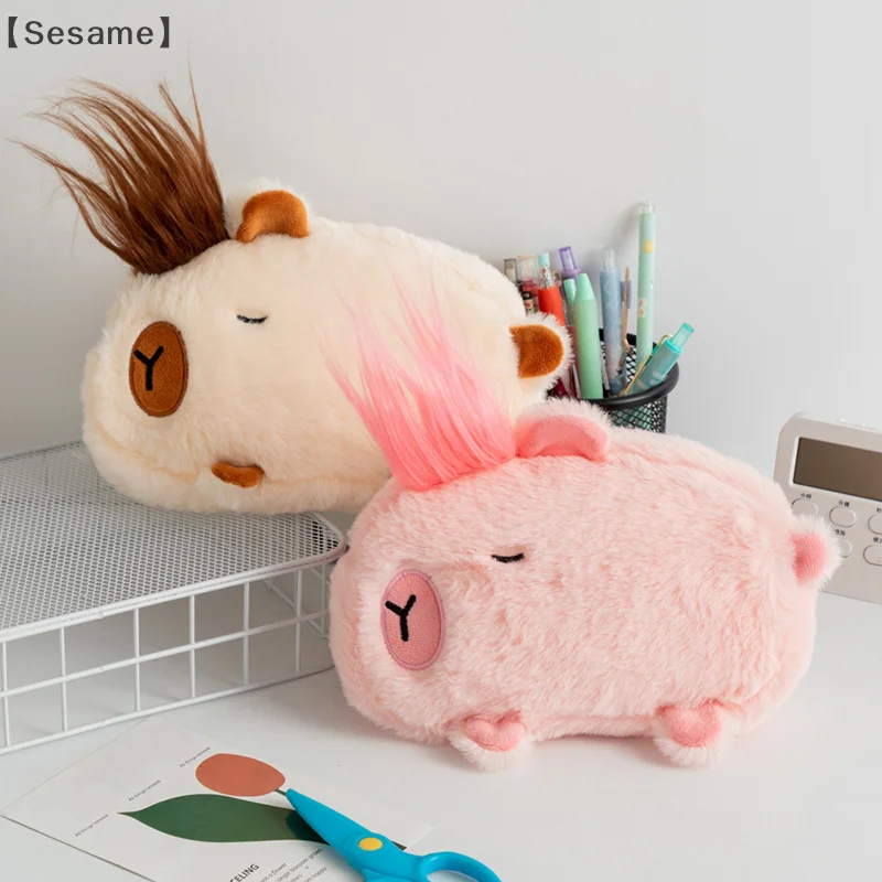 Kawaii Cartoon Creatieve Potlood Tas Student Capybara Pluche Briefpapier Opbergtas Grote Capaciteit Leren Briefpapier Leveringen