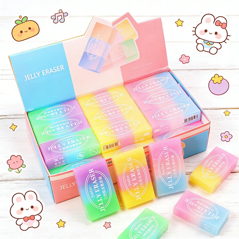 6/12PCS 3 Kleurverloop Jelly Gum Zacht Rubber Leuke Kawaii Gummen voor Studenten School Kantoorbenodigdheden Kids Gift briefpapier