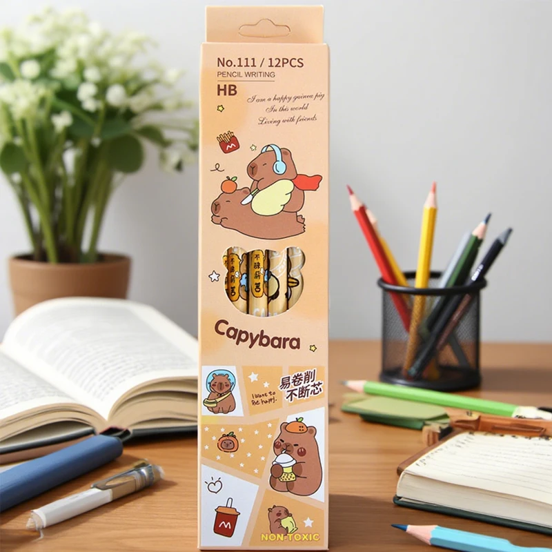 12 stuks Cartoon Leuke Capybara Potlood Met Gum Creatieve Kawaii Potlood Student Briefpapier Student Gift Prijs Kantoorbenodigdheden