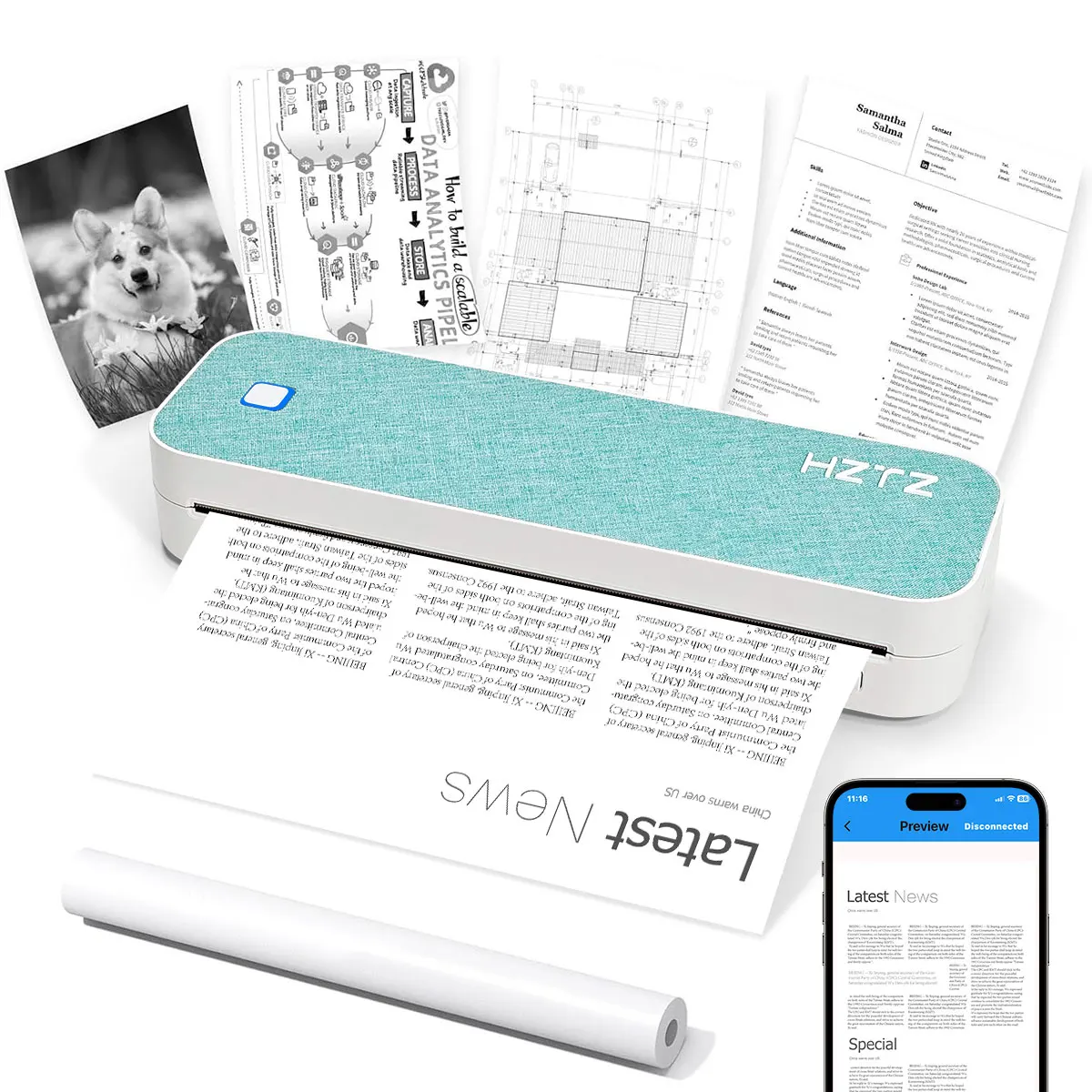 Compacte A4 Thermische Printer: Draadloze Mobiele Printpartner, 652g Lichtgewicht, Klaar voor Telefoon/PC, Perfect voor Werk, Reizen & Studie