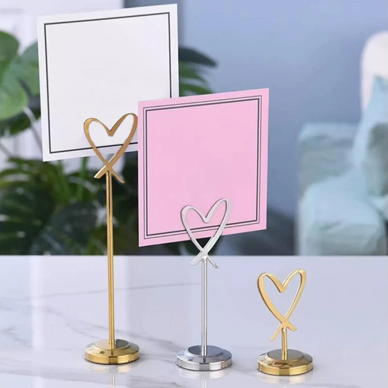 Roestvrijstalen hartvormige kaarthouder Minimalistische metalen memo-fotostandaard met antislipbasis voor thuiskantoordecoratie