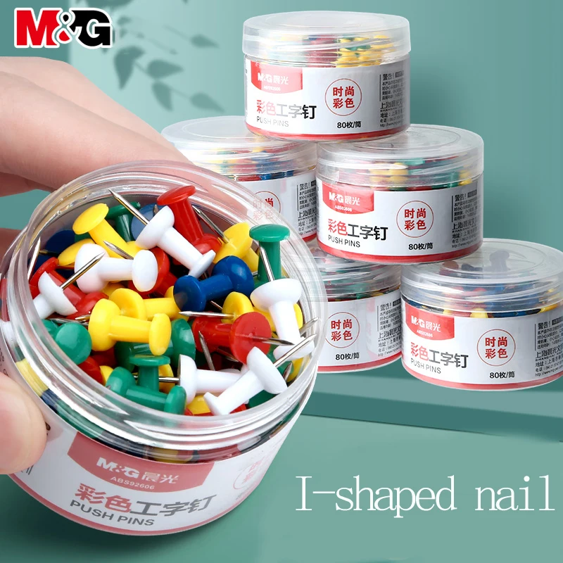M&G Multi-color T-vormige punaises 80/stuk prikbord kantoor fotodisplay ambachtelijke pinnen lange platte kop tack
