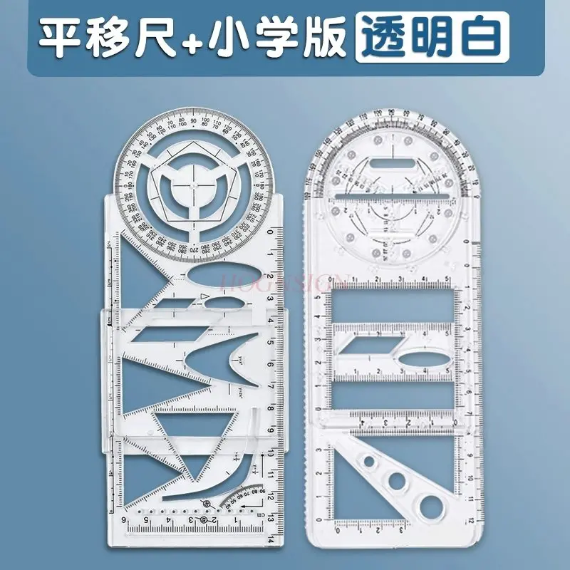 2 stuks multifunctionele vertaalliniaal voor basisschoolleerlingen om grafische liniaal te gebruiken, functionele geometrische tekenliniaal