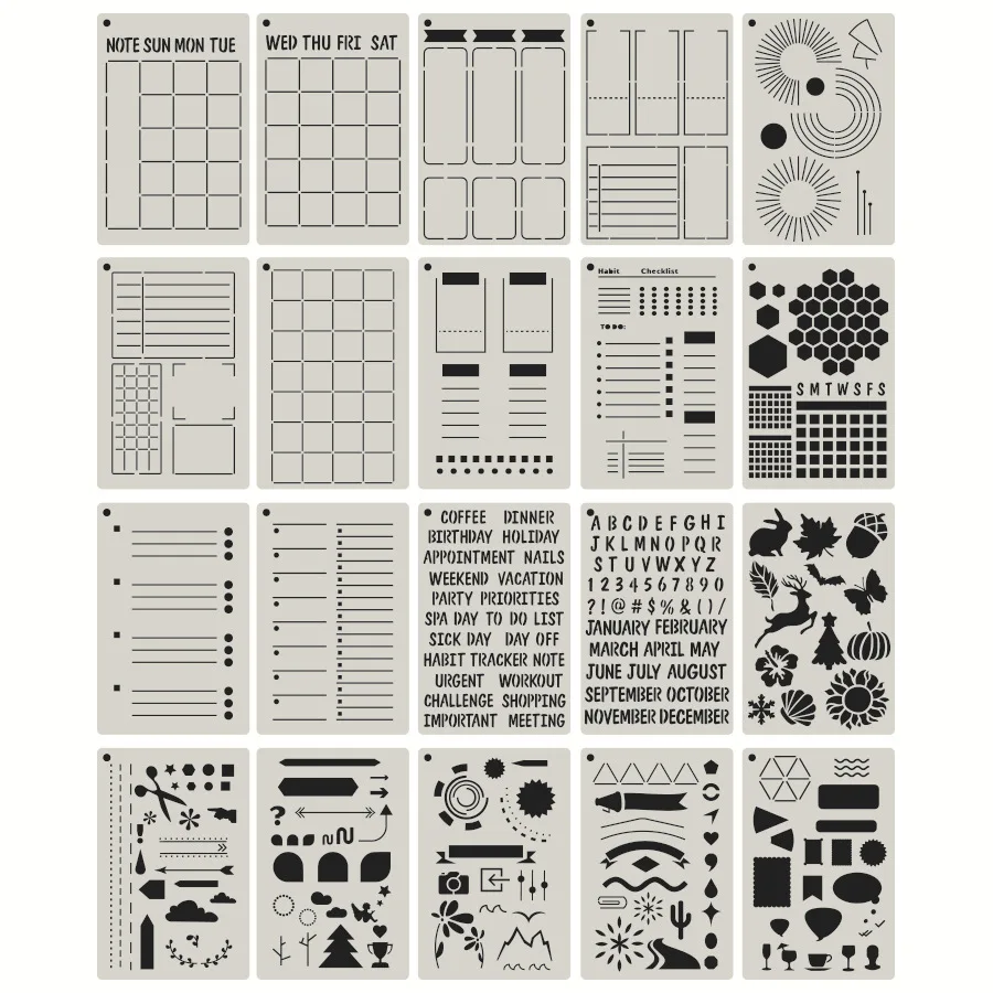 20st A5 Planner stencils set multifunctionele dagboeksjablonen voor tekenen DIY plakboek dagboek kalender dagboekbenodigdheden