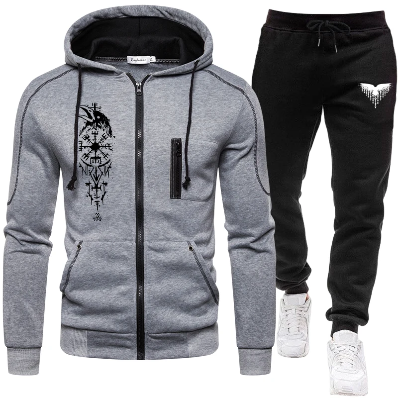 Vintage Gedrukt Mannen Rits Hoodie Set Herfst Winter Dagelijks Casual Sport Joggingpak Capuchon Bovenkleding Joggingbroek Herenkleding