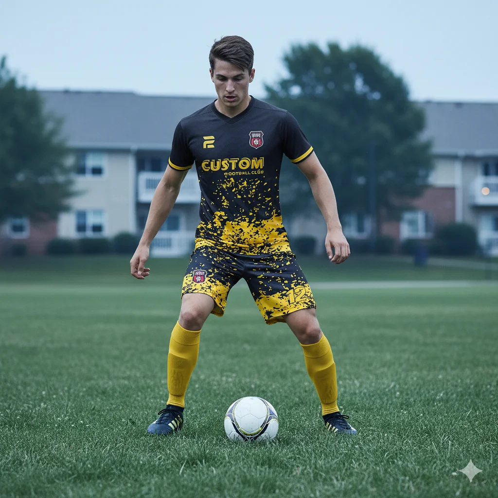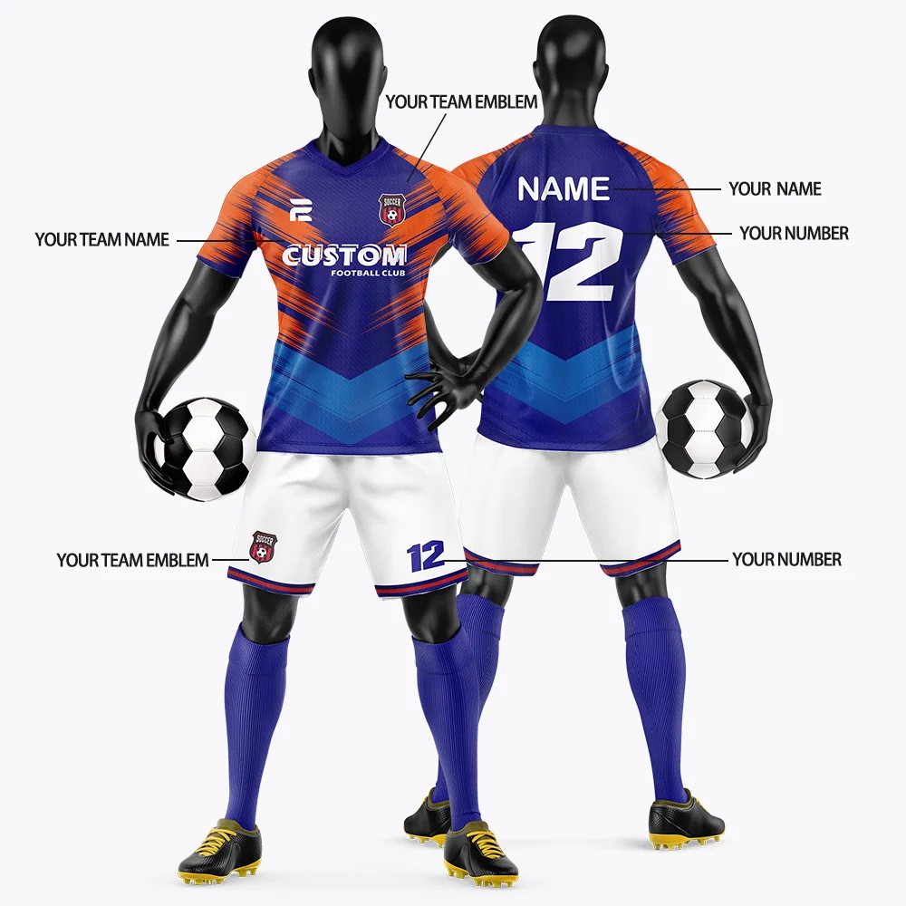Aangepaste sublimatie voetbalshirtsets Ademend voetbaluniform Teamvoetbalshirt Set Training voetbaluniform voor heren