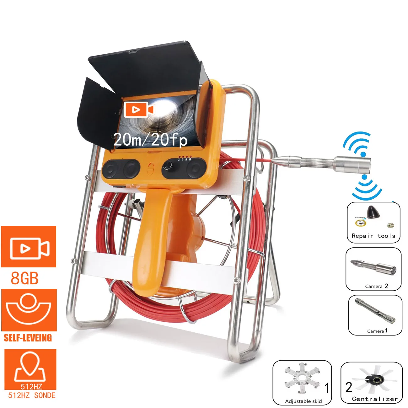 40m DVR 512hz sonde Rioolcamera Afstandsteller Afvoerpijp Inspectie Borescope Camera met opvouwbare roestvrijstalen beugel