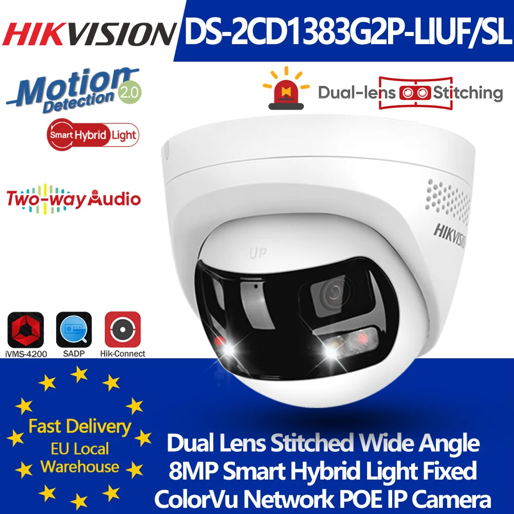 Hikvision DS-2CD1383G2P-LIUF/SL 8 MP 4K dubbele lens gestikt 180 ° Groothoek Smart Hybrid Light POE Netwerk IP-camera MD 2.0 Audio