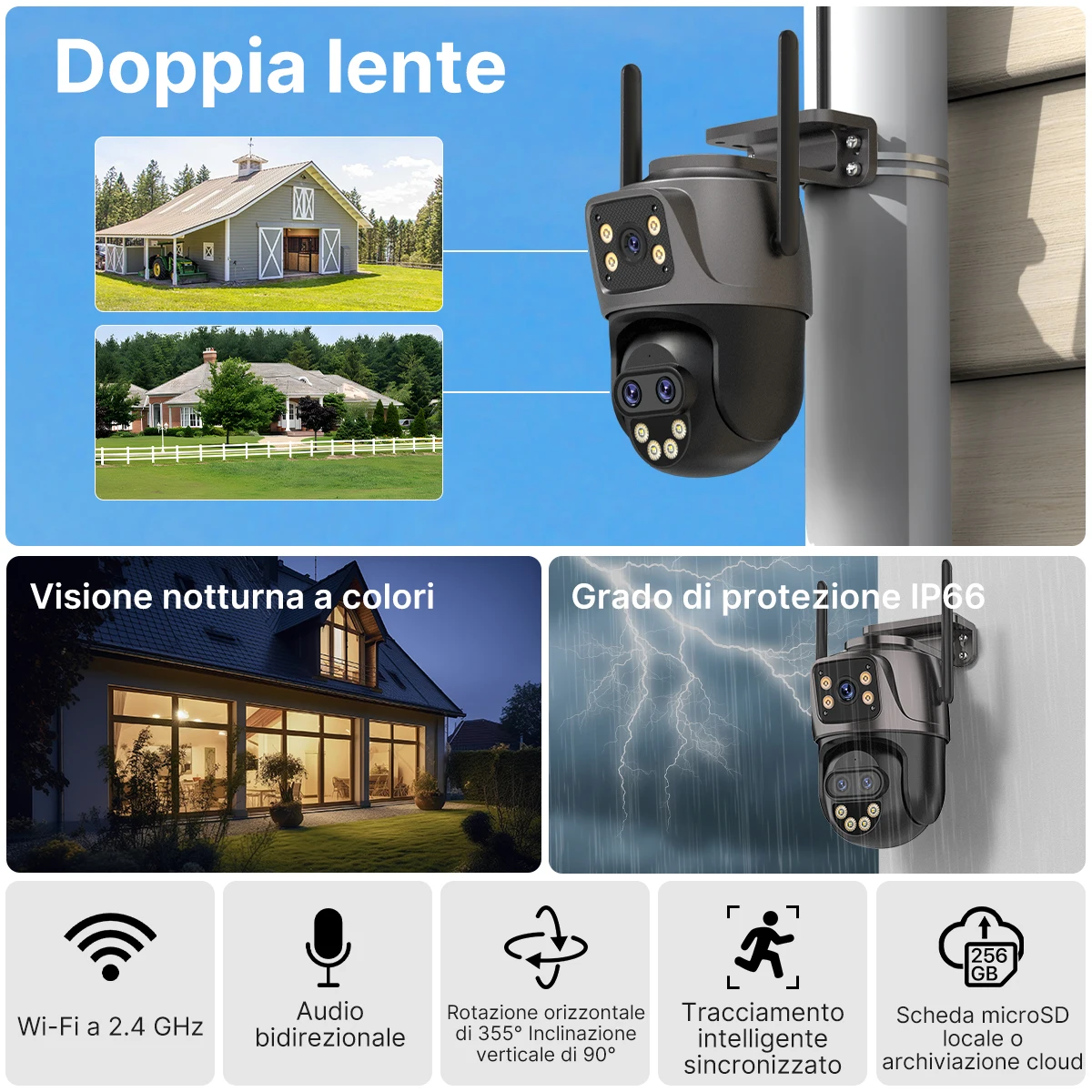 WONSDAR iCSee IP-camera Wifi Buitenschermen Beveiliging PTZ-camera 24/7 video-opname Automatische tracking Weerbestendige bewakingscamera