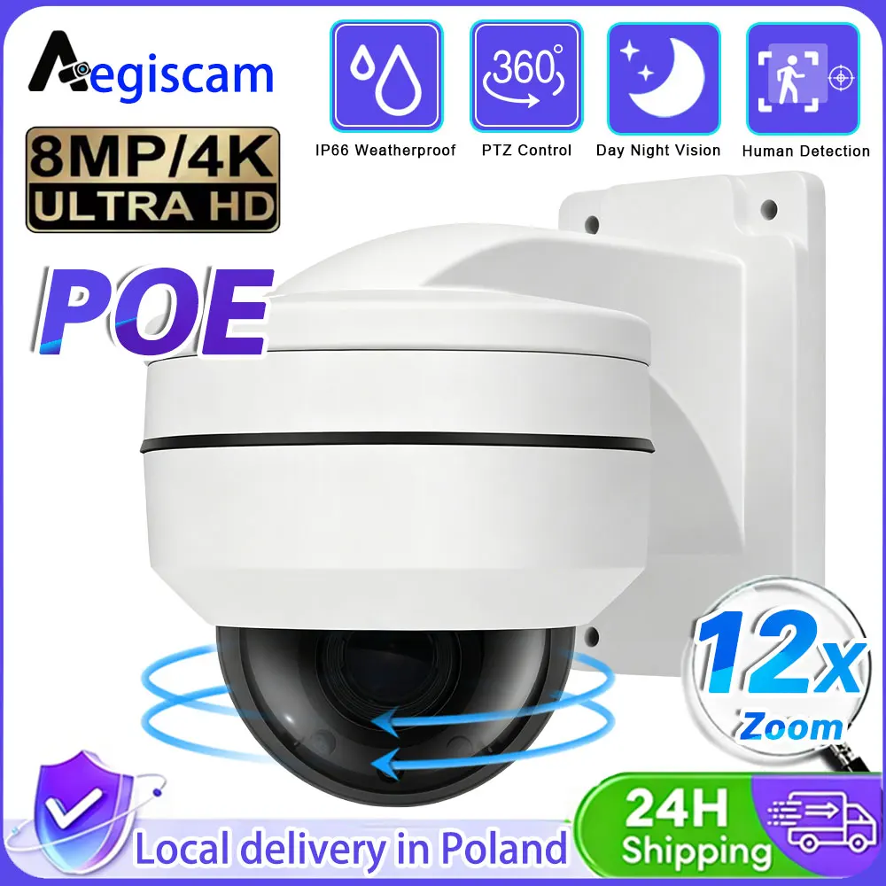 8MP 4K PTZ IP-camera Buitendome PoE 12X optische zoom CCTV Audio AI Menselijke detectie IP66 Weerbestendige bewakingscamera