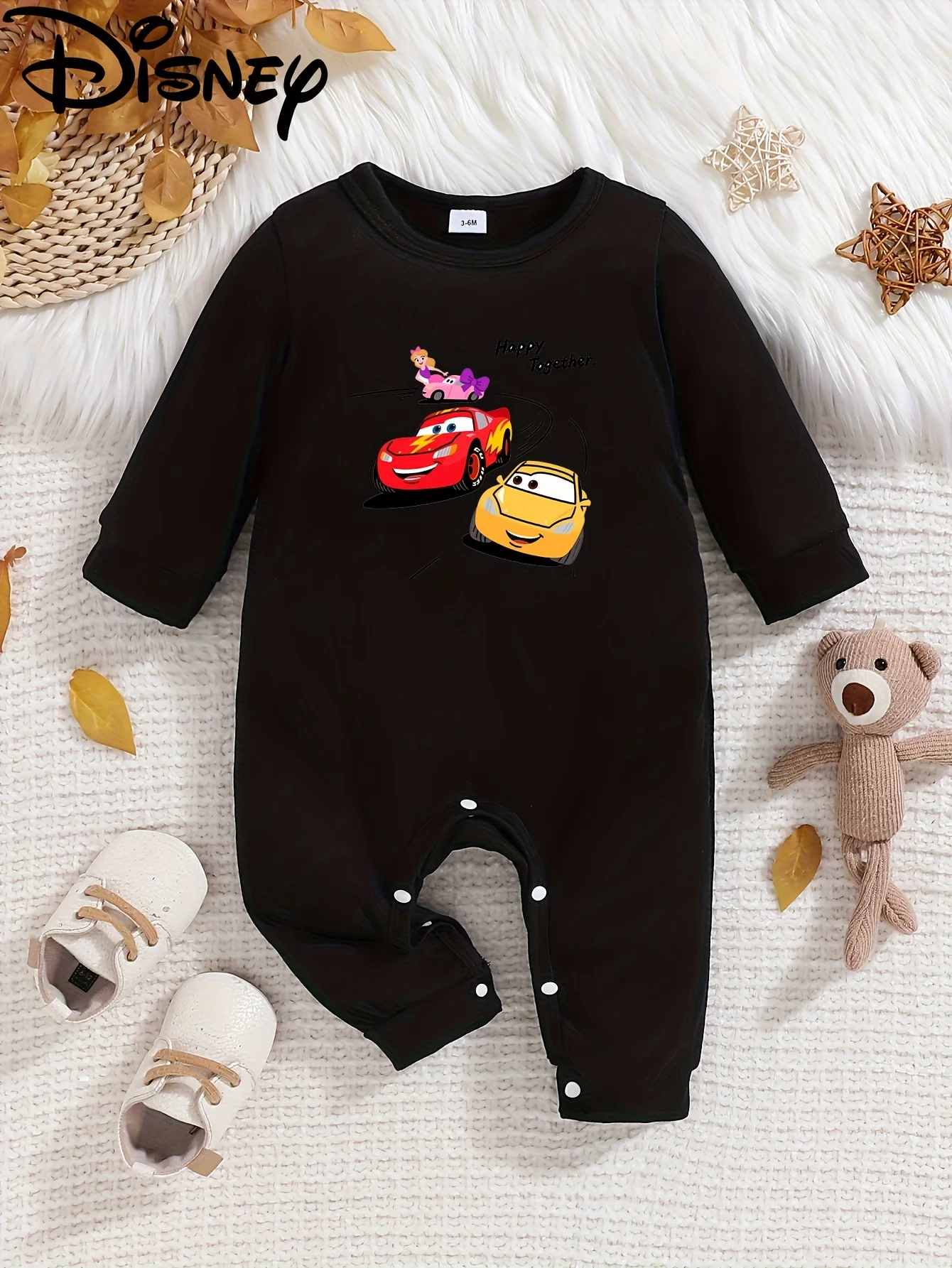 【Geautoriseerd】Disney Lightning Mcqueen babyrompertje met lange mouwen, schattige patroonprint, ronde hals, zacht en comfortabel, wasbaar, geschikt voor alle seizoenen, geschikt voor buitenkleding