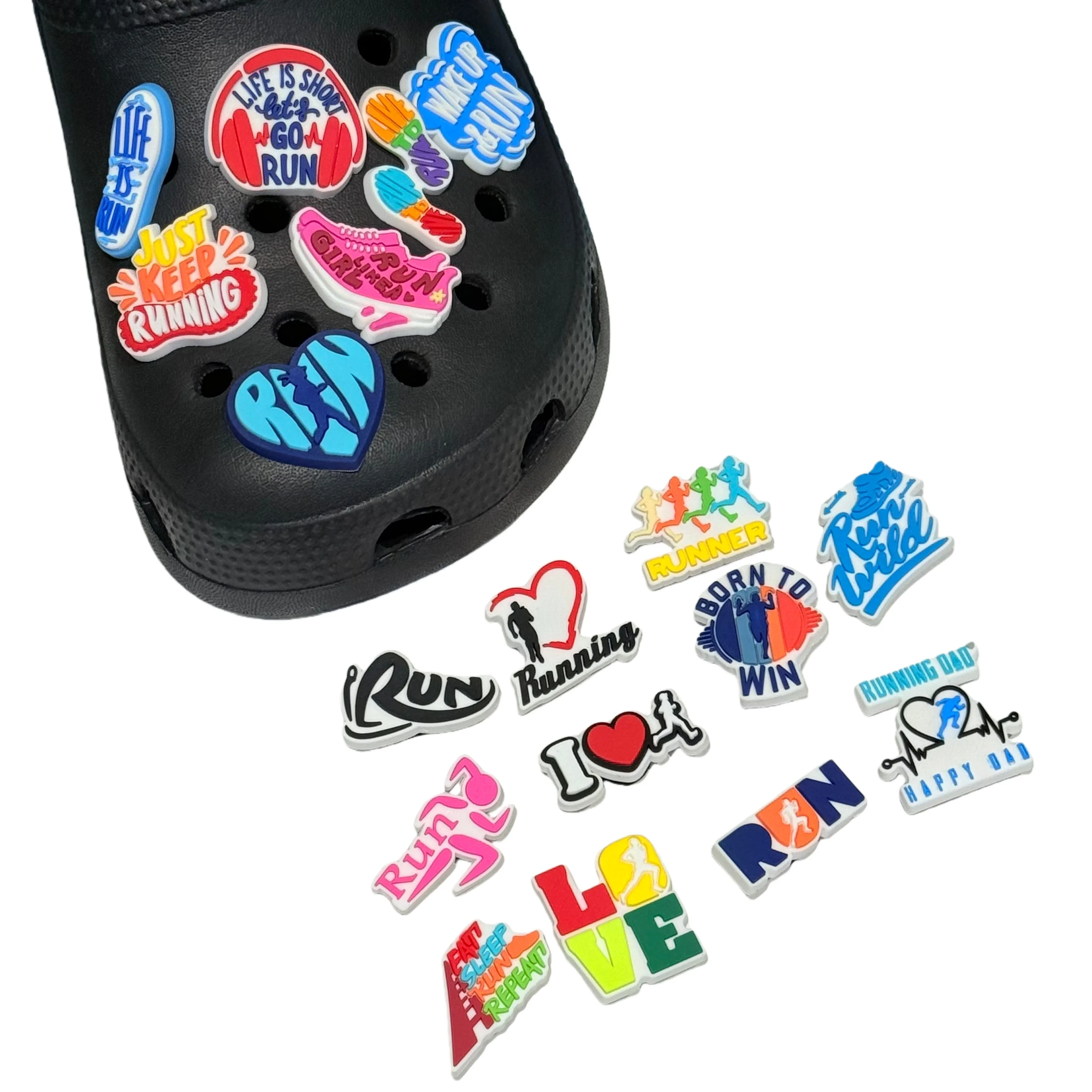 1-18 Stuks Leven is Run Schoen Decoraties Liefde Running Man Vrouw PVC Sandalen Knop Charms DIY Runner sport Polsbandjes