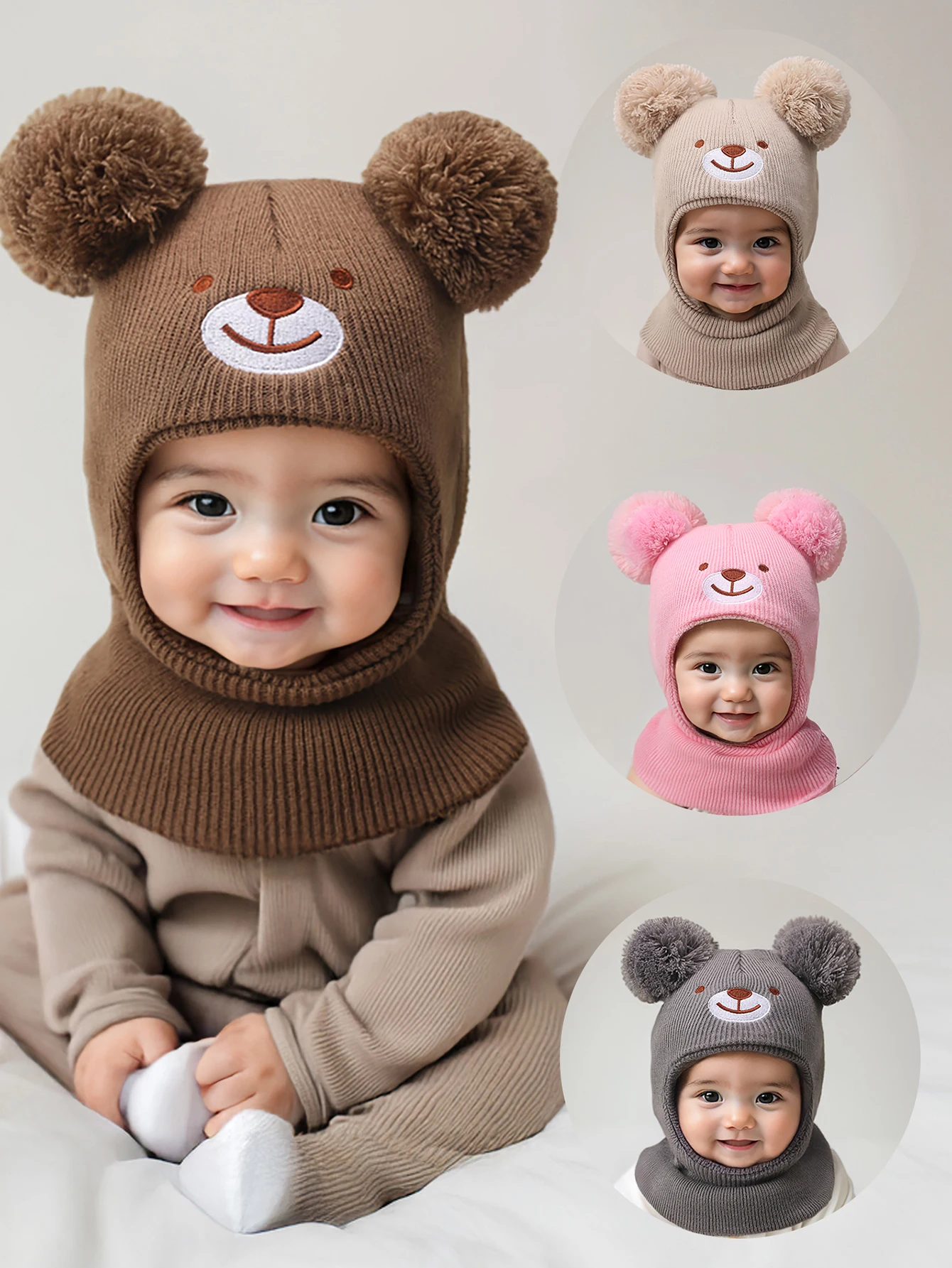 1PCS 0-3Y pasgeboren zwarte beer borduurwerk bivakmuts skimasker peuter muts dubbele ballen baby meisjes jongens mutsen kinderen winter hoeden