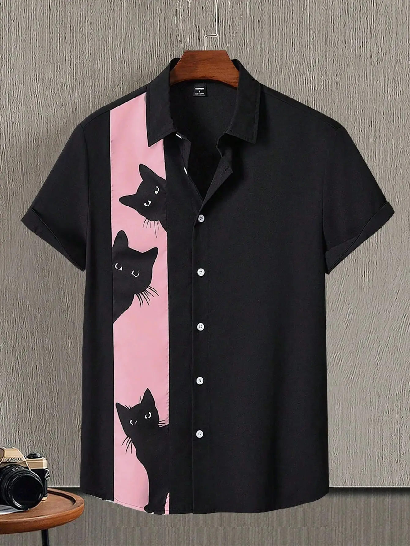 Grappig kattenshirt voor heren met speelse knopen met korte mouwen en schattig kattenpatroon Outdoor Casual en leuke modieuze tops