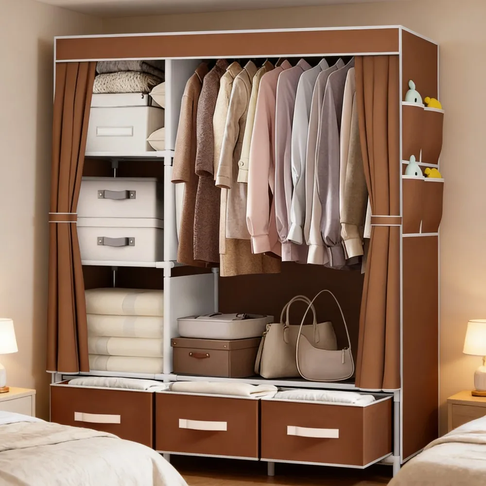 65 inch kledingkasten van canvasstof, grote draagbare kledingkast, slaapkamer, stofdichte opbergkast, kledingkast met laden