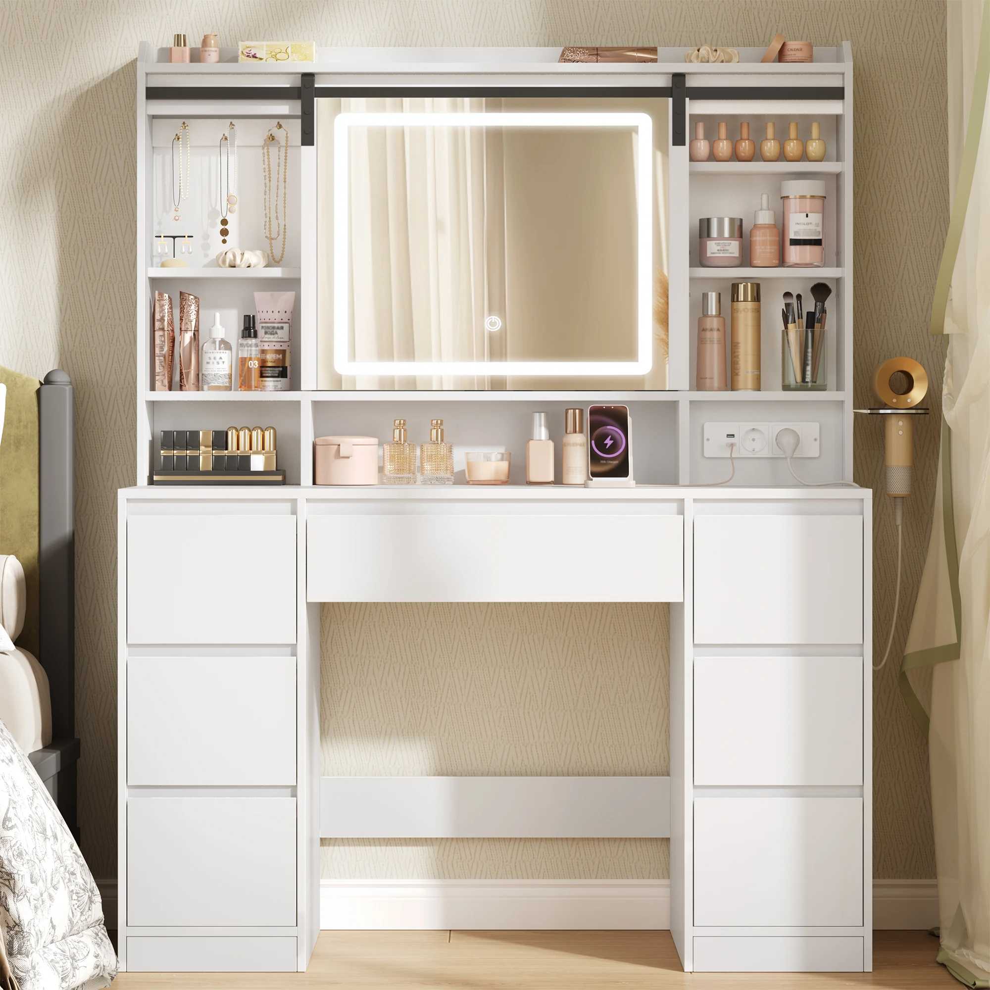 Make-up ijdelheden make-up bureau met schuifspiegel, slaapkamer kaptafel, make-up bureau met 6-laden slaapkamermeubilair