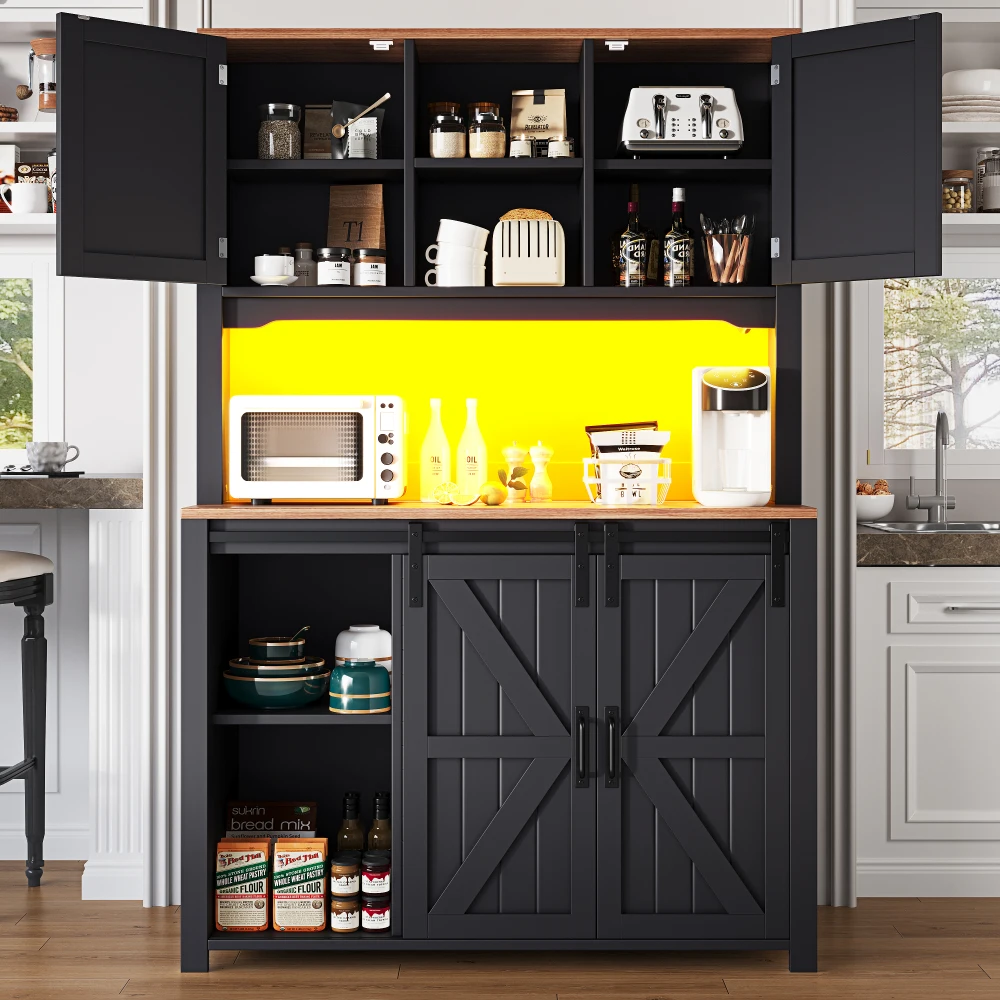 Keukenkasten (115×40×174,7 Cm), hoge keukendressoirs, dressoirs, keukenkasten met schuifdeuren en LED-verlichting