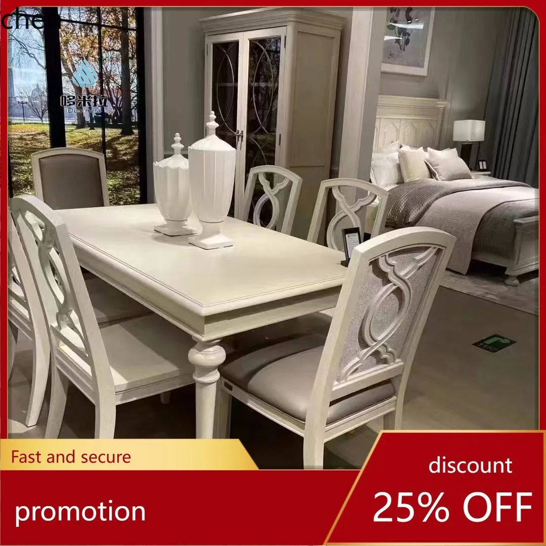 Nieuwe Franse massief houten eettafel en stoelcombinatie voor klein huishoudelijk gebruik met draaischijf high-end middeleeuwse stijl essen rond