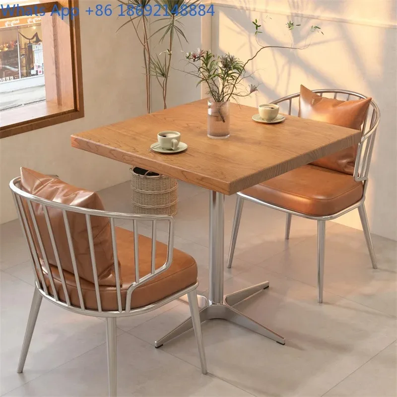 Eenvoudige melkthee dessertwinkel massief houten vierkante tafel eetwinkel vrije tijd ijzeren kunst restaurant één tafel twee stoelen set