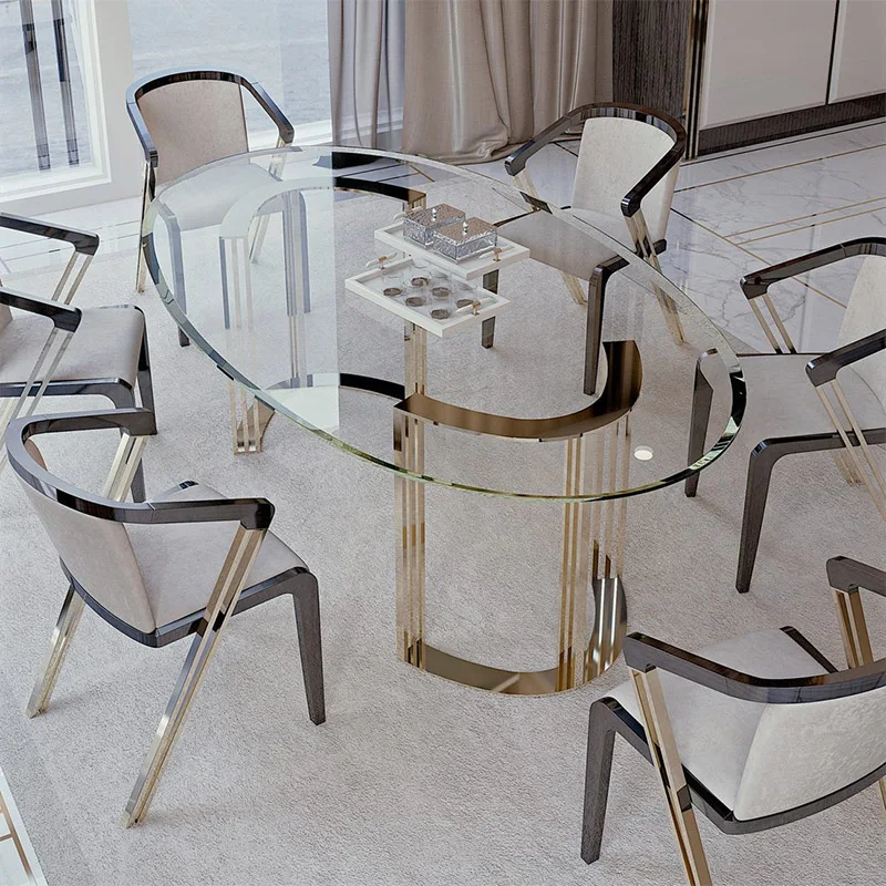 Ovale eettafel met crèmekleurig blad, lichte luxe hoogwaardige moderne minimalistische eettafel en stoelenset in Wabi-Sabi-stijl