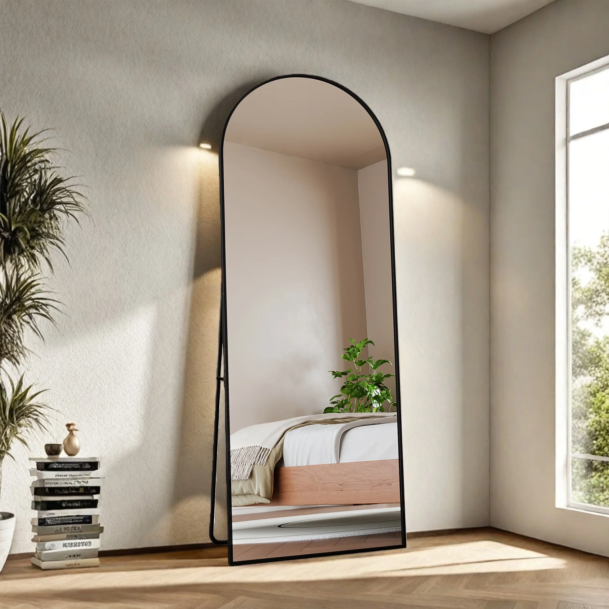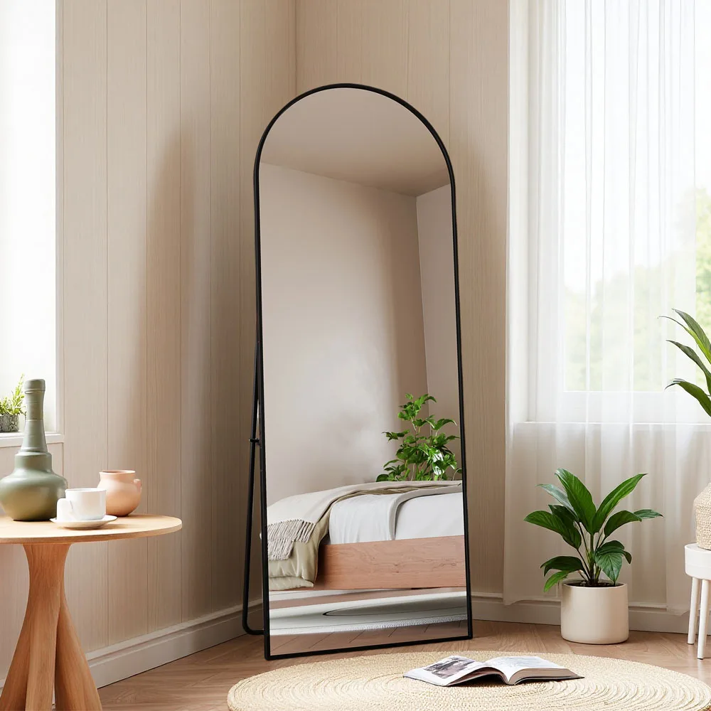 Volledige spiegel, gebogen staande spiegel, grote passpiegel, aan de muur gemonteerd, leunende spiegel, staande spiegel,