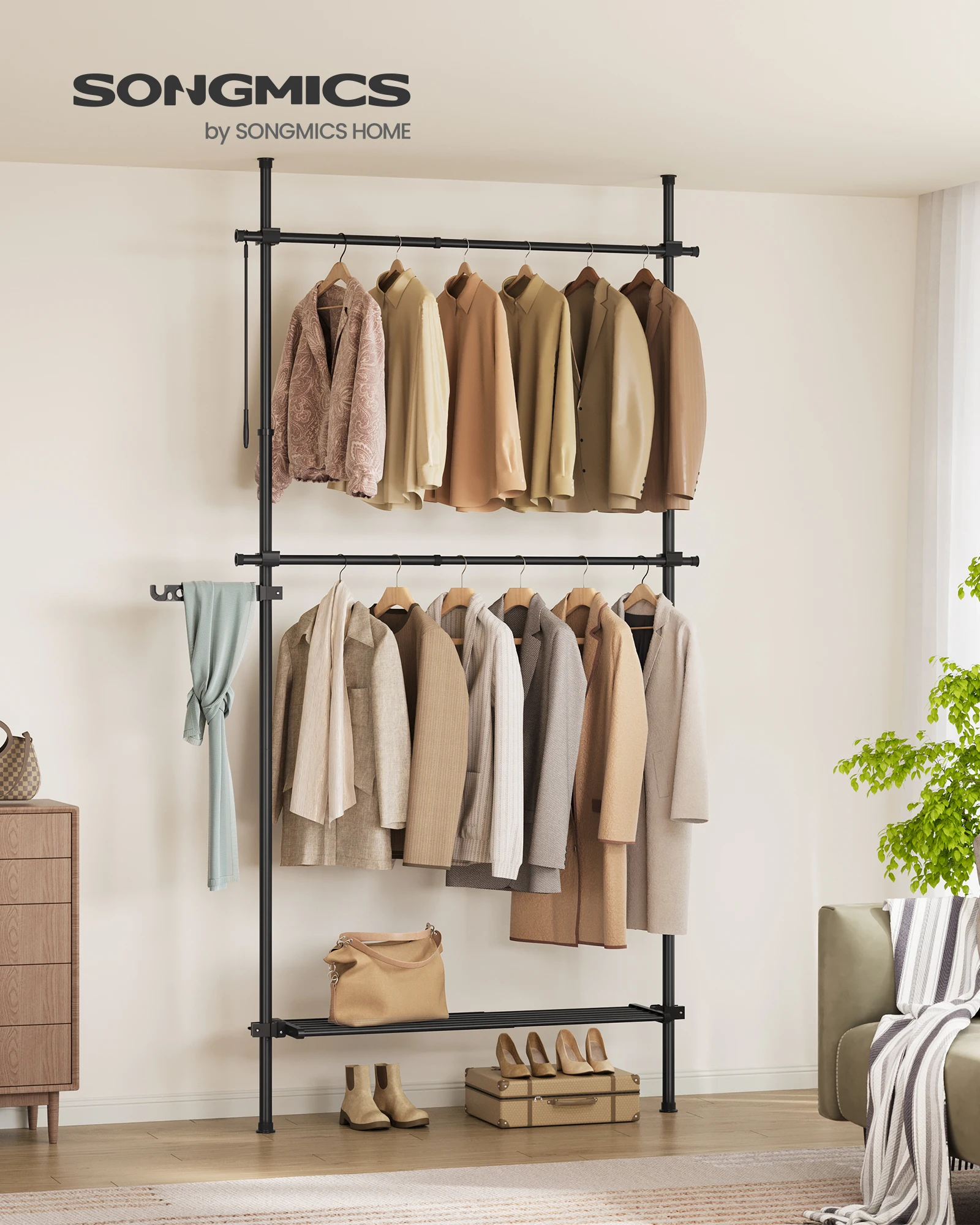 Songmics Jurken Stand, Dekens Hoog, 3-Tier, Hoogte En Breedte Verstelbaar Met Grijperarm