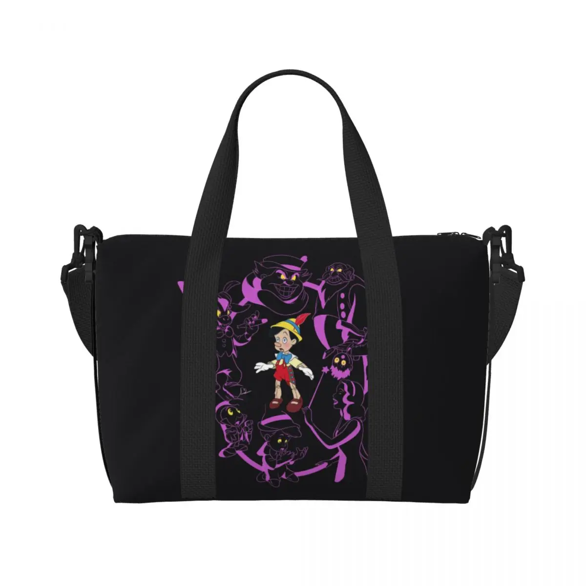 Aangepaste Cartoon P-Pinocchio draagtas Dames grote capaciteit Gym strand schouder reistas