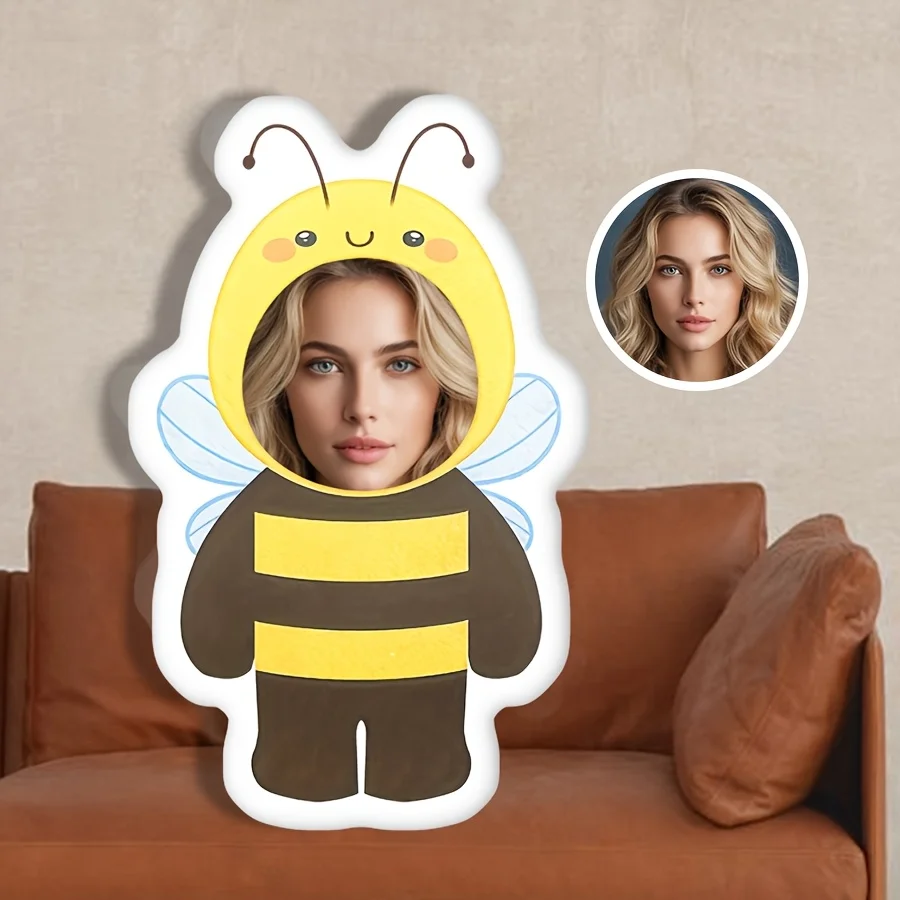 Schattig bijenvormig kussen gezicht maatwerk gepersonaliseerd kussen Vaderdag Moederdag cadeau kussen voor vrienden