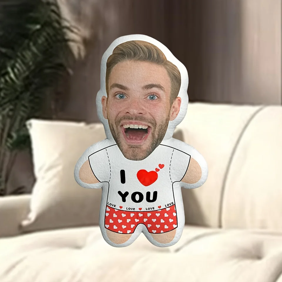 Op maat gemaakt "I love you" gezichtspluche kussen 3D-geprint ontwerp Gemaakt met zachte polyestervezel De perfecte keuze voor vakantiecadeaus.