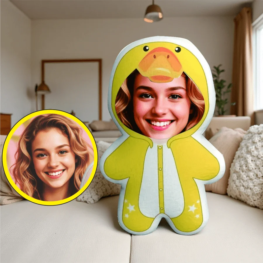 Gepersonaliseerde gele eend pluche kussen met aanpasbaar gezicht Het perfecte cadeau voor zowel mannen als vrouwen Machinewasbaar Realistisch