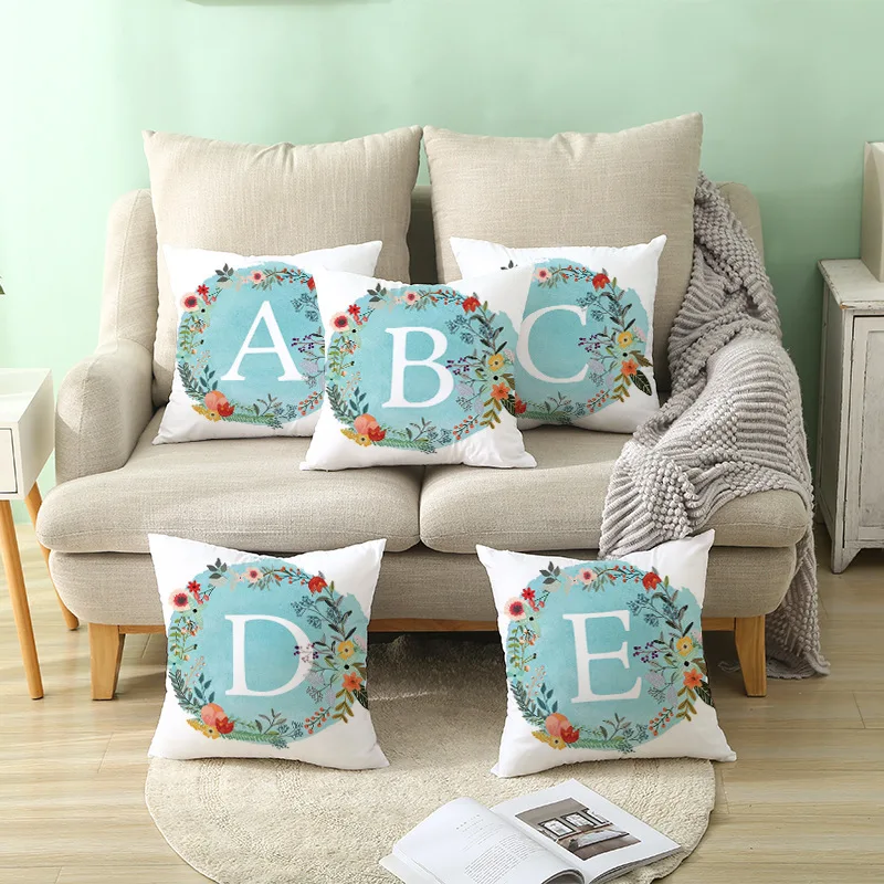 Blauw letterpatroon sierkussenhoes met korte pluche print woonkamer bank decoratie kussenhoes kussenslopen decoratief
