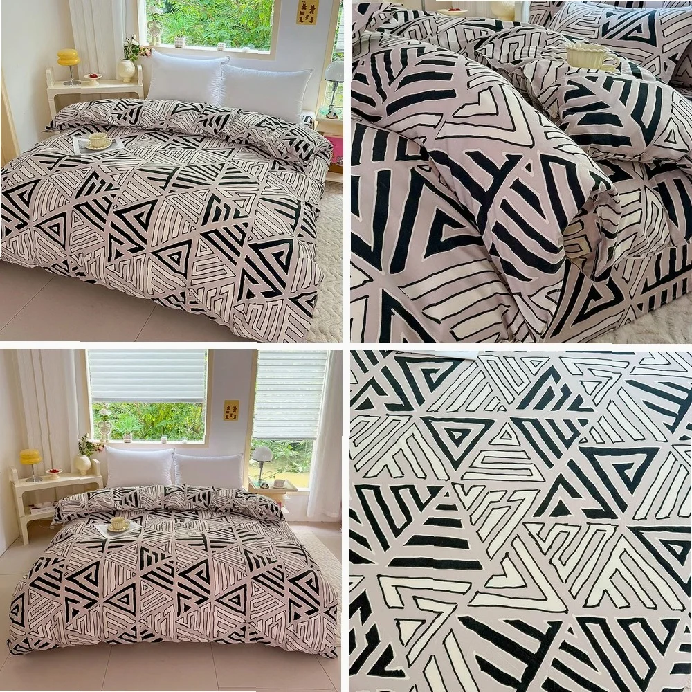 1PC beige dekbedovertrek met geometrische driehoekprint, zwart-wit patroon beddengoed voor moderne minimalistische slaapkamerdecoratie