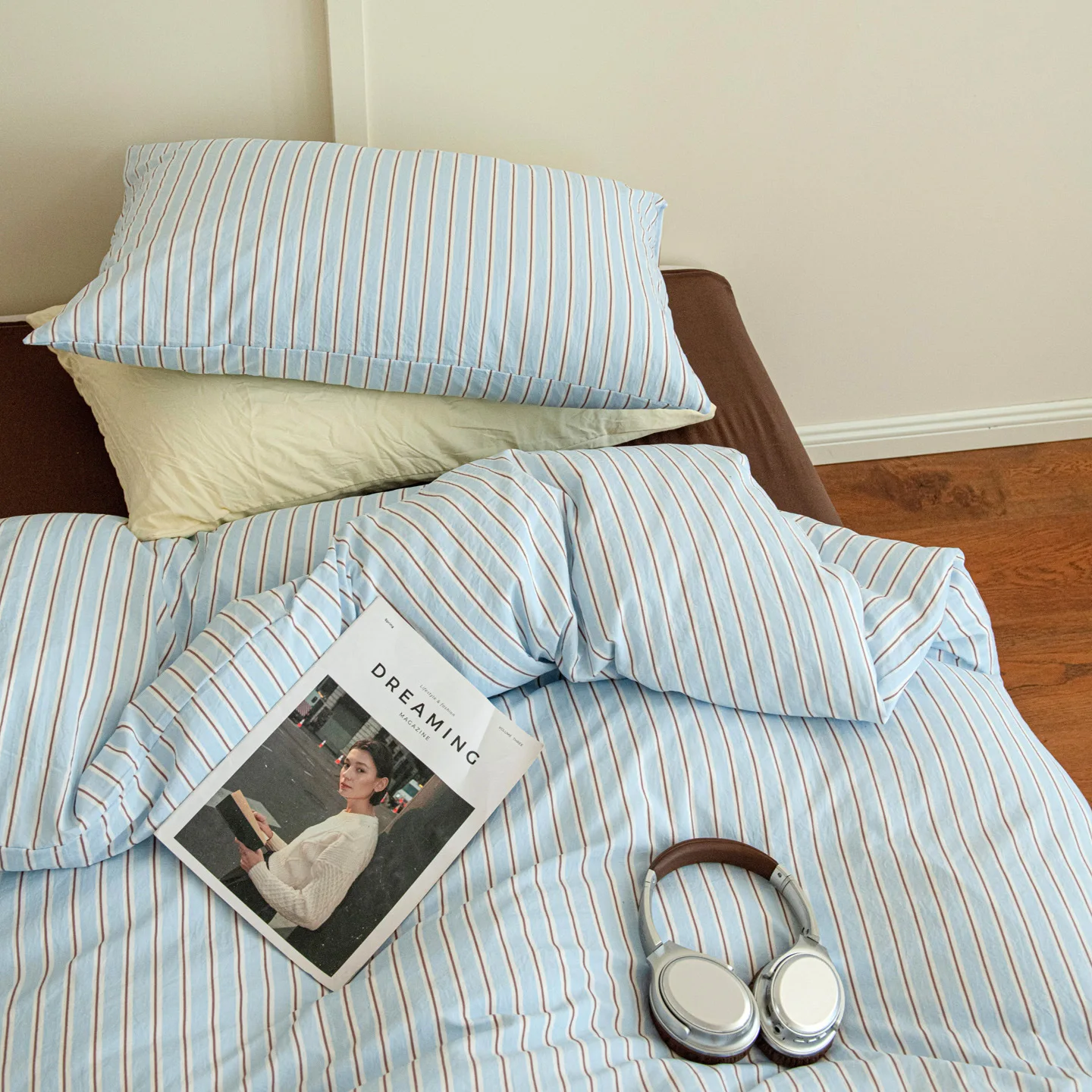 1 Stuks Streep Print Dekbedovertrek Twin Queen King Dekbedovertrek Koreaanse Vier Seizoenen Volledige Koningin Volwassen Kinderen Slaapzaal Trooster Cover